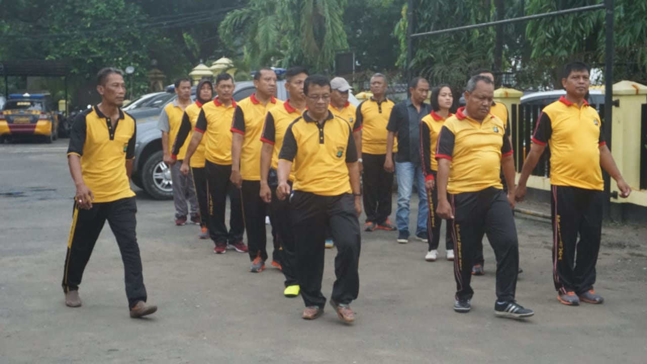 Jakarta, Jajaran personel Polsek Kalideres Jakarta Barat menggelar Apel Pagi rutin yang dilanjutkan kerja Bakti di lingkungan Mako dan sekitar sekolah TK Bhayangkari 6 Kalideres, Jumat (31/01/2020).