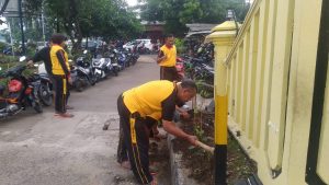 “Dengan adanya lingkungan yang bersih maka akan tercipta rasa nyaman bagi anggota terutama pada saat memberikan pelayanan kepada warga masyarakat” terangnya.