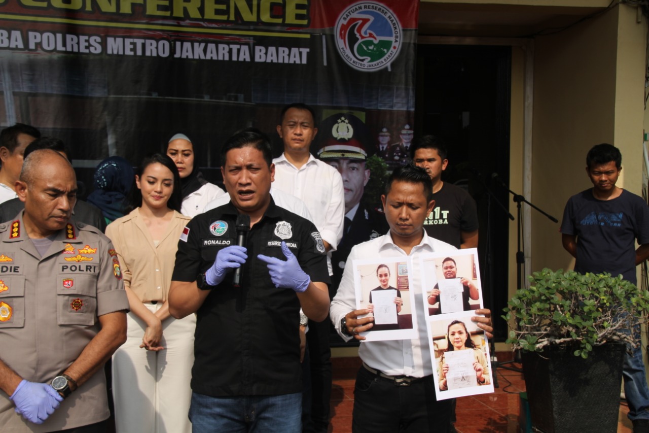 Kasat Narkoba Polres Metro Jakarta Barat Kompol Ronaldo Maradona Siregar menambahkan” Perlu kami tegaskan dari hasil uji laboratorium BNN Rambut RE sudah keluar yaitu negative