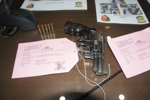 Petugas kami dilapangan turut mengamankan beberapa alat bukti kejahatan berupa 2 buah Senpi Rakitan jenis Revolver dengan kaliber 9 mm, Enam Buah Peluru, beberapa unit alat komunikasi Hp, 3 buah Kendaraan sepeda motor milik pelaku dan sejumlah perhiasan emas hasil kejahatan