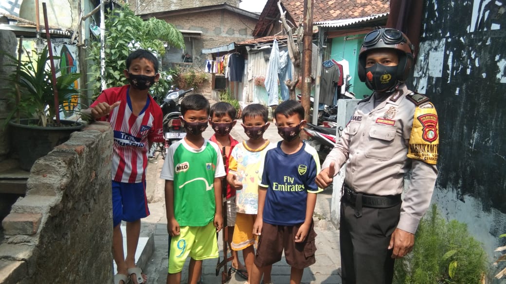 Pasalnya, Bhabinkamtibmas Kelurahan Duri Kosambi Polsek Cengkareng Bripka Achmad Haris memberikan masker kepada anak – anak yang sedang bermain tidak mengunakan masker.