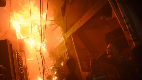 Jakarta, Kebakaran hebat terjadi di kawasan pemukiman padat di Jalan Keadilan III, Glodok, Tamansari, Jakarta Barat, Kamis malam, 22 Oktober 2020. 19 mobil unit pemadam kebakaran dikerahkan untuk menjinakkan kobaran api.