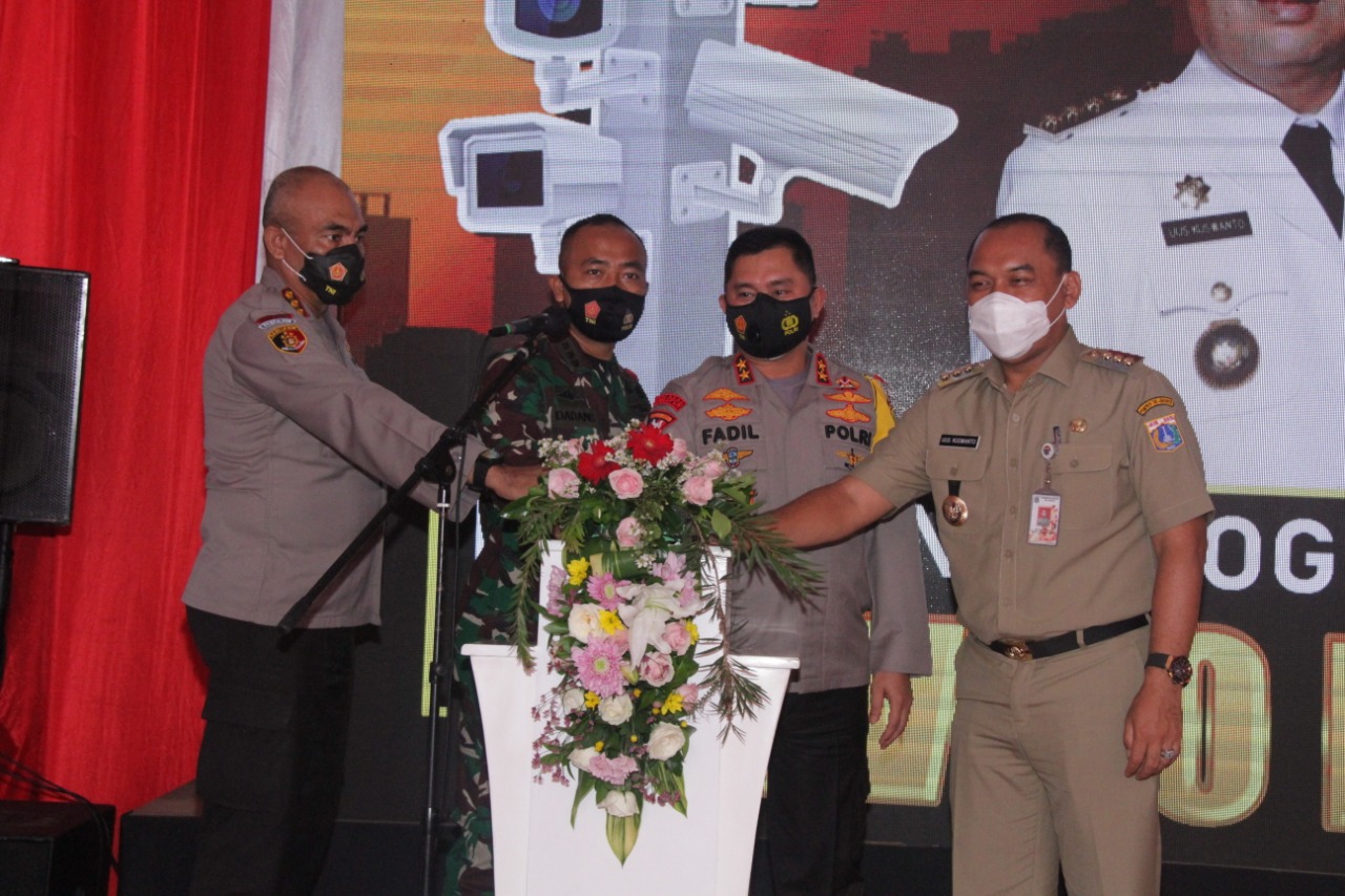 Jakarta, Kapolda Metro Jaya Irjen Pol Dr. M Fadil Imran, Sik, M.si meresmikan program kapolres Metro Jakarta Barat Kombes Pol Audie S Latuheru dalam menjaga Jakarta Barat yang kondusif berupa program CCTV No Blindspot di halaman Polres Metro Jakarta Barat, Senin/21/12/2020.