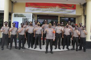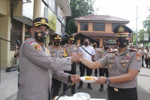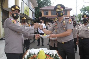 JAKARTA – Kapolres Metro Jakarta Barat Kombes Pol Audie S Latuheru memimpin Upacara Laporan Kenaikan Pangkat Personel Polres Metro Jakarta Barat Periode 1 Januari 2021, Senin (04/01/2021).
