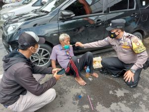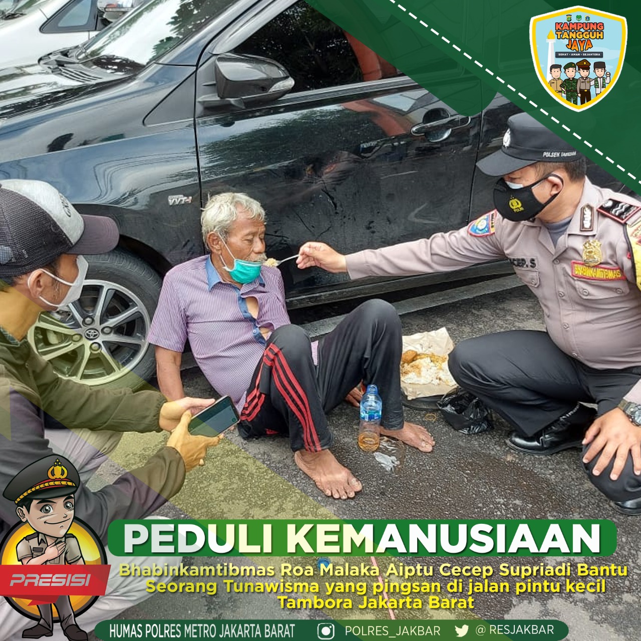 Seperti halnya yang dilakukan anggota Bhabinkamtibmas kelurahan Roa Malaka Polsek Tambora Polres Metro Jakarta Barat, Aiptu Cecep Supriadi yang membantu warga yang pingsan di Jalan Pintu kecil Tambora Jakarta Barat, Senin (08/02/2021).
