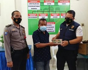 Pada kesempatan tersebut Kanit Reskrim selaku Padal KTJ RW 02 menyerahkan bantuan beras merah sebanyak satu dus untuk dibagikan kepada warga terpapar Covid-19 yang melaksanakan isolasi mandiri.