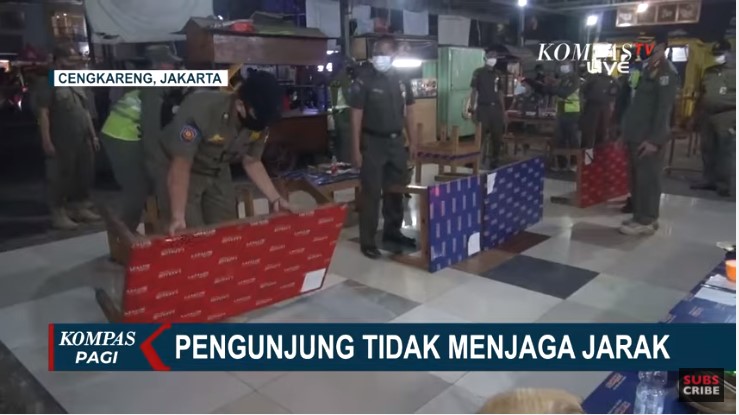 Jakarta mc-restrojakbar.com, Langgar jam malam dan abai protokol kesehatan, Pujasera dan Kedai Kopi di wilayah Duri Kosambi, Cengkareng, Jakarta Barat yang masuk zona merah ini disegel Satpol PP.