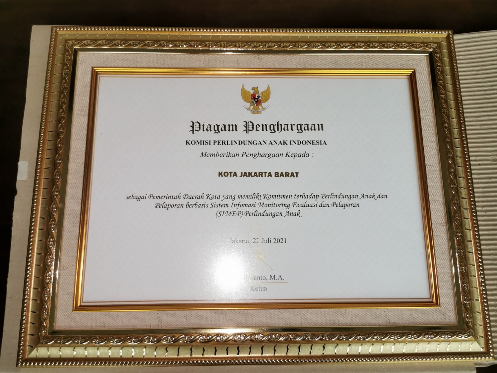 Jakarta, memperingati hari anak nasional 2021 yang biasa jatuh pada setiap tanggal 23 juli, Komisi Perlindungan Anak Indonesia ( KPAI ) memberikan penghargaan kepada polres metro jakarta barat