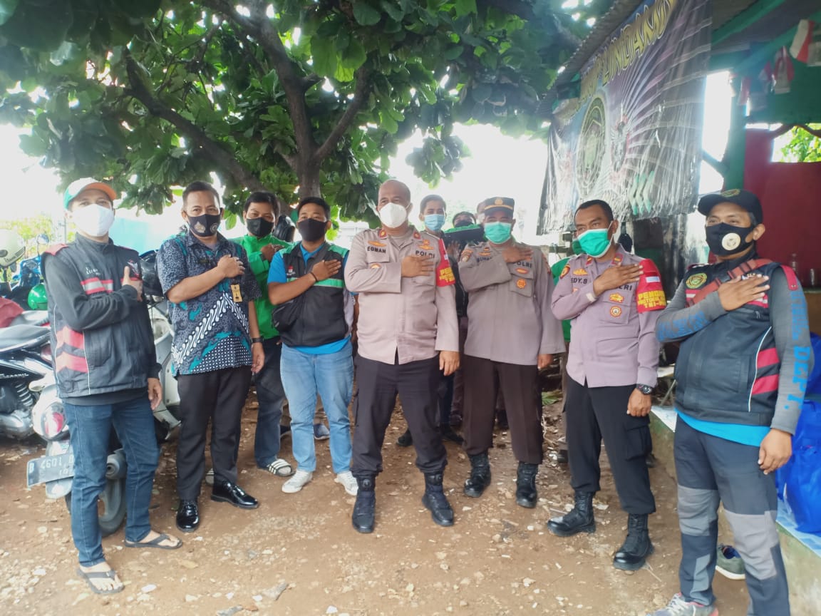Jakarta, Kapolsek Cengkareng Polres Metro Jakarta Barat Kompol Egman beserta jajaranya mendatangi Pos Ojek Online di Jalan Daan Mogot Rw 05 Kelurahan Duri Kosambi, Cengkareng, Jakarta Barat, Jumat 23/7/2021 siang pukul 14.39 wib.