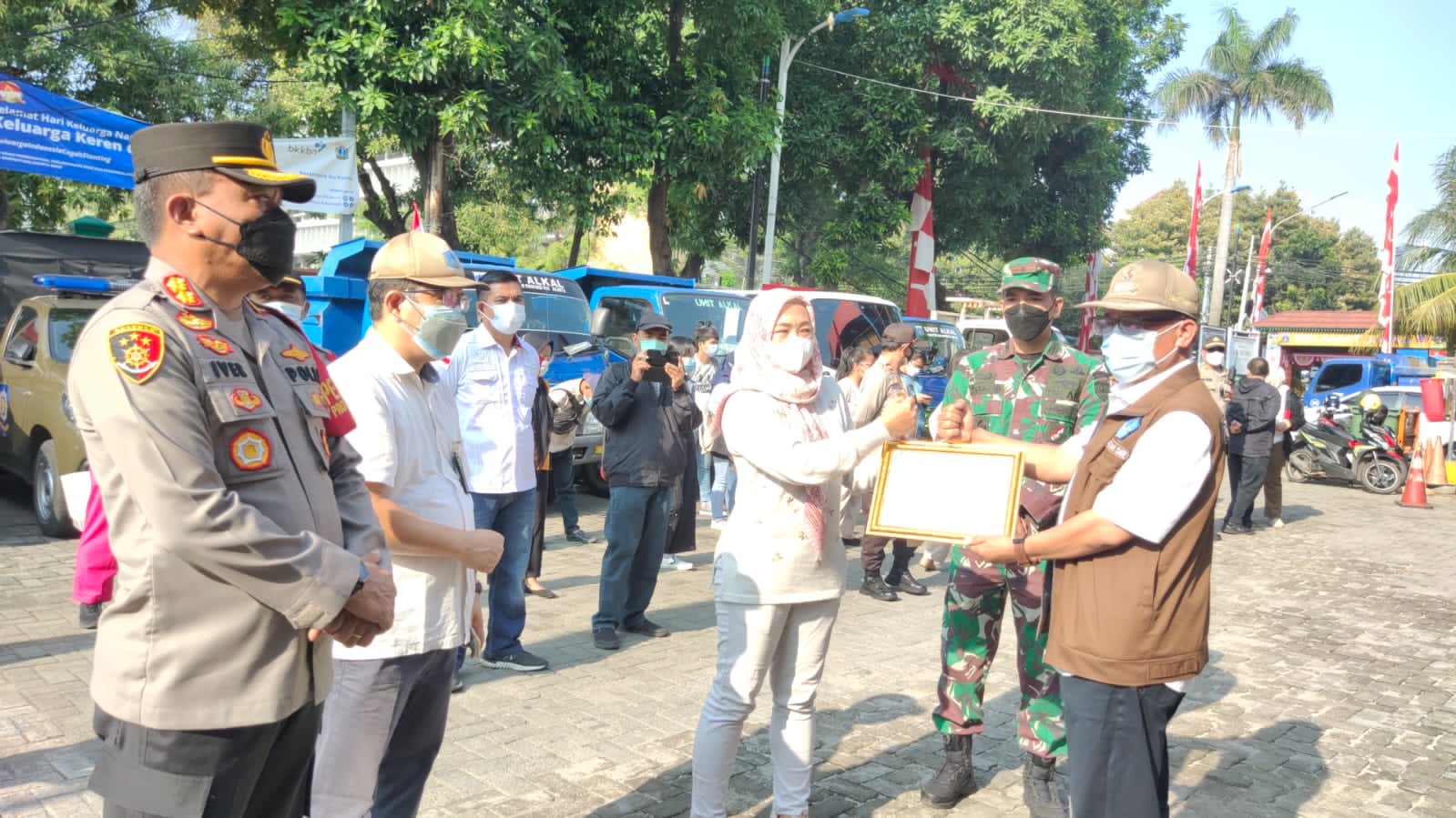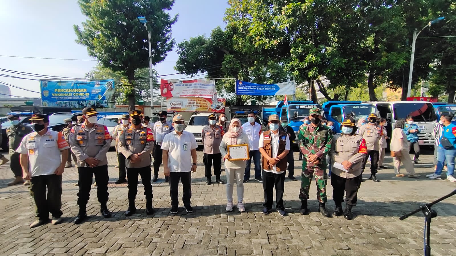 Jakarta, Polsek Metro Taman Sari bersama 3 pilar Taman Sari Jakarta Barat memberikan piagam penghargaan kepada RW 03 Kel Tangki Tamansari Jakarta Barat dan para relawan tenaga kesehatan vaksinasi merdeka, Rabu, 11/8/2021.