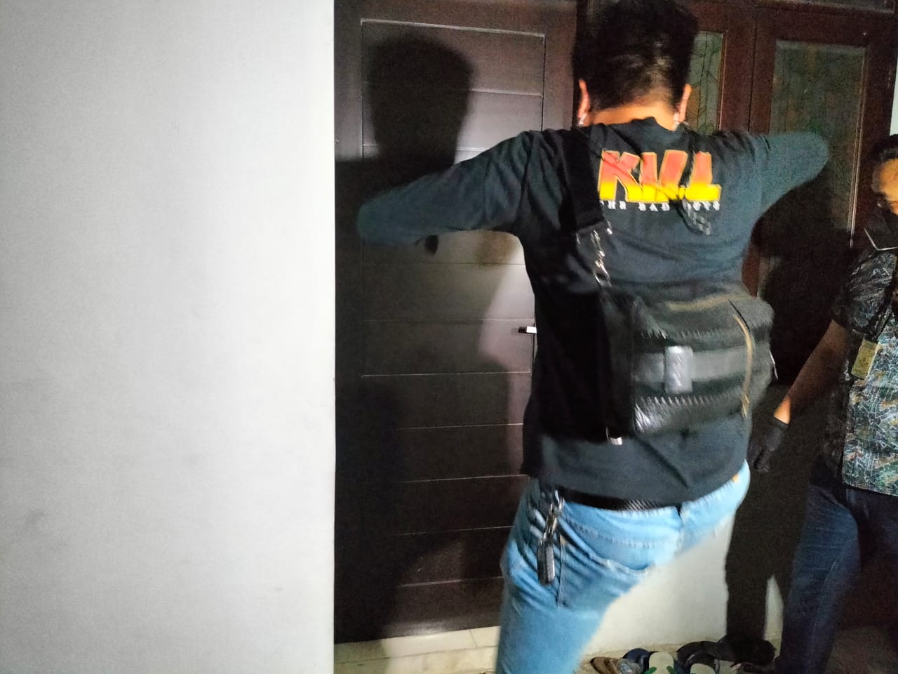Penggeledahan ini dipimpin langsung oleh Kanit Reskrim umum Polres Metro Jakarta Barat AKP Avrilendy dan Kasubnit Jatanras Ipda M Rizky Ali Akbar bersama anggotanya langsung mendobrak pintu samping rumah lantaran sempat terkunci.