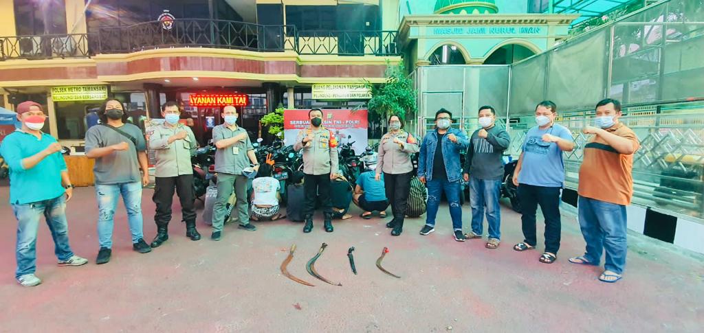 Guna kepentingan penyidikan lebih lanjut sekelompok pemuda berikut barang bukti yang berhasil kami amankan dibawa kepolsek metro taman sari