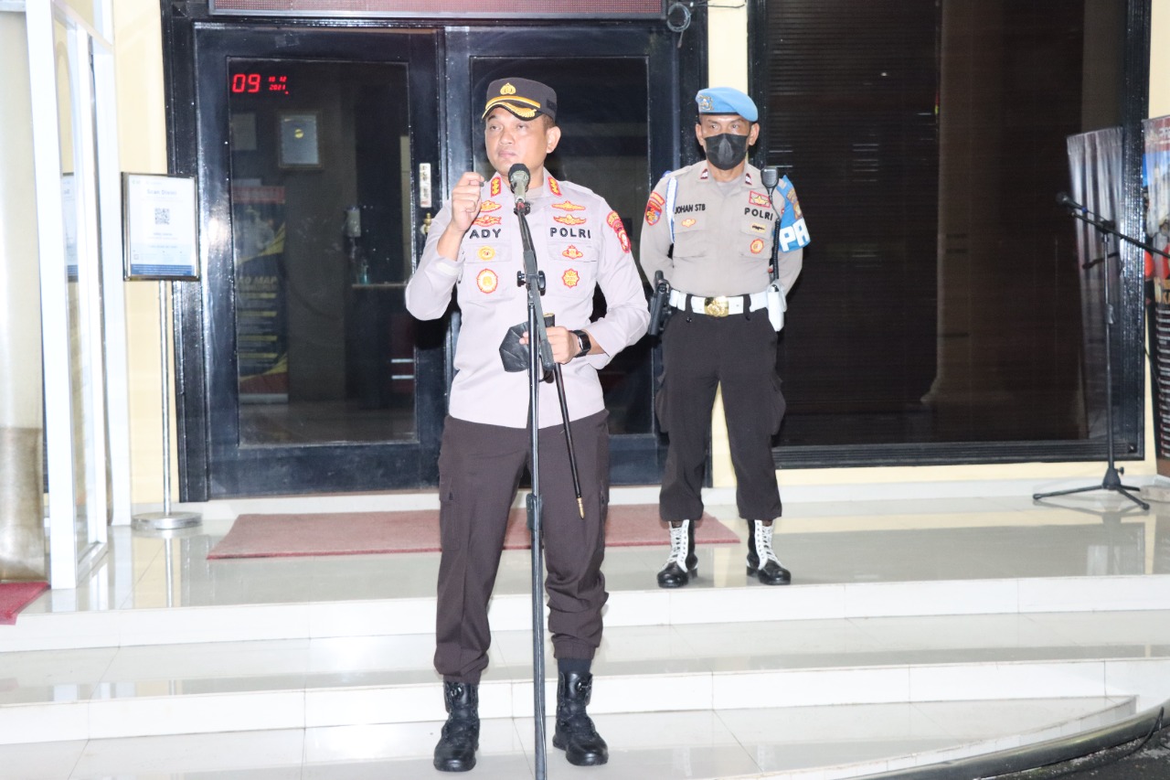 JAKARTA, Polres Metro Jakarta Barat melaksanakan Apel gabungan Patroli Skala Besar dan Penerapan Protokol Kesehatan di tempat hiburan malam di wilayah Jakarta Barat, Sabtu, 18/12/2021.