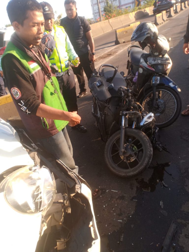Peristiwa kecelakaan tersebut melibatkan kendaraan mobil dan sepeda motor.