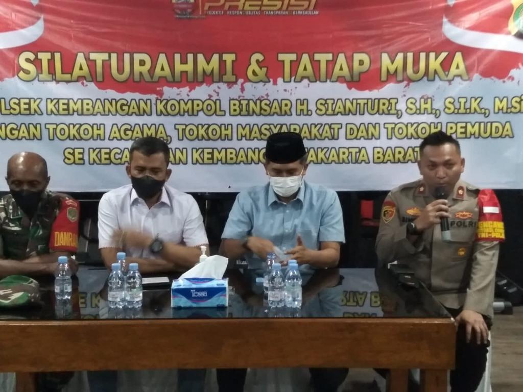 Silaturahmi tersebut dilaksanakan di ruang aula polsek kembangan dan turut hadir Kapolsek Kembangan Kompol Binsar H Sianturi, Wakasat reskrim Polres Tangerang kota kompol H Khoiri, Danramil kembangan Kapten CHB YZ Ayomi, camat kembangan Bpk Joko Mulyono, ketua pemuda kembangan H Umar abdul aziz dan para toga dan tomas di wilayah kembangan Jakarta Barat