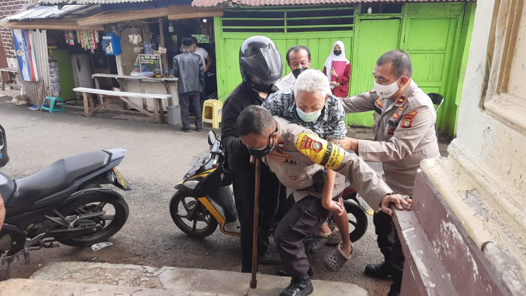 Tampak terlihat anggota personel polsek palmerah melayani warganya dan bahkan membantu masyarakat yang mengalami kesulitan seperti warganya yang sudah lanjut usia (lansia) dengan memapah / menggendongnnya hingga antar jemput