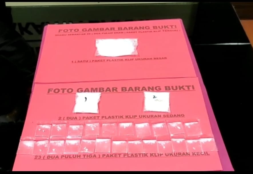 “Selain itu kami menemukan barang bukti narkotika jenis sabu siap edar sebanyak 1 paket klip besar, 2 paket klip ukuran sedang dan 23 paket klip ukuran kecil dengan total berat brutto 43,34 gram, 1 unit hp merk samsung, 1 unit hp merk xiomi dan 1 buah timbangan digital yang disimpan pada tas nike warna hitam,” ucap Rosana
