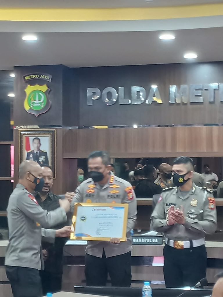Penyerahan penghargaan tersebut di laksanakan di aula lantai 2 gedung Promoter polda Metro Jaya yang diserahkan langsung oleh bapak wakapolda Metro Jaya Brigjen Pol Hendro Pandowo di dampingi bapak Dedi Irsan selaku perwakilan dari ombudsman Republik Indonesia kepada bapak kapolres metro jakarta barat Kombes pol Ady Wibowo