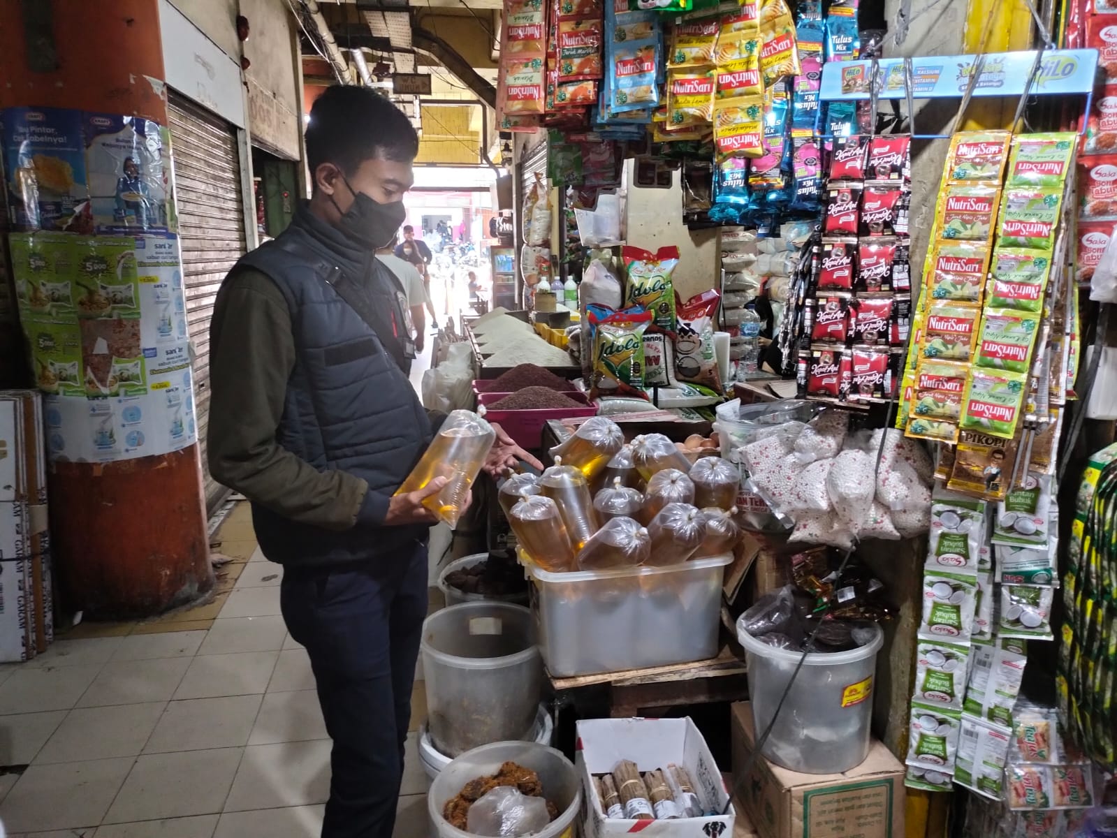 Kali ini petugas kepolisian dari sat reskrimsus Polres Metro Jakarta Barat mendatangi sejumlah pasar yang berada diwilayah Jakarta Barat diantaranya Pasar Kopro, pasar Hipli, pasar Kalideres, pasar Grogol, pasar Pecah Kulit, pasar Cengkareng, pasar pesing, pasar jembatan dua hingga pasar rel, Selasa, 12/4/2022.
