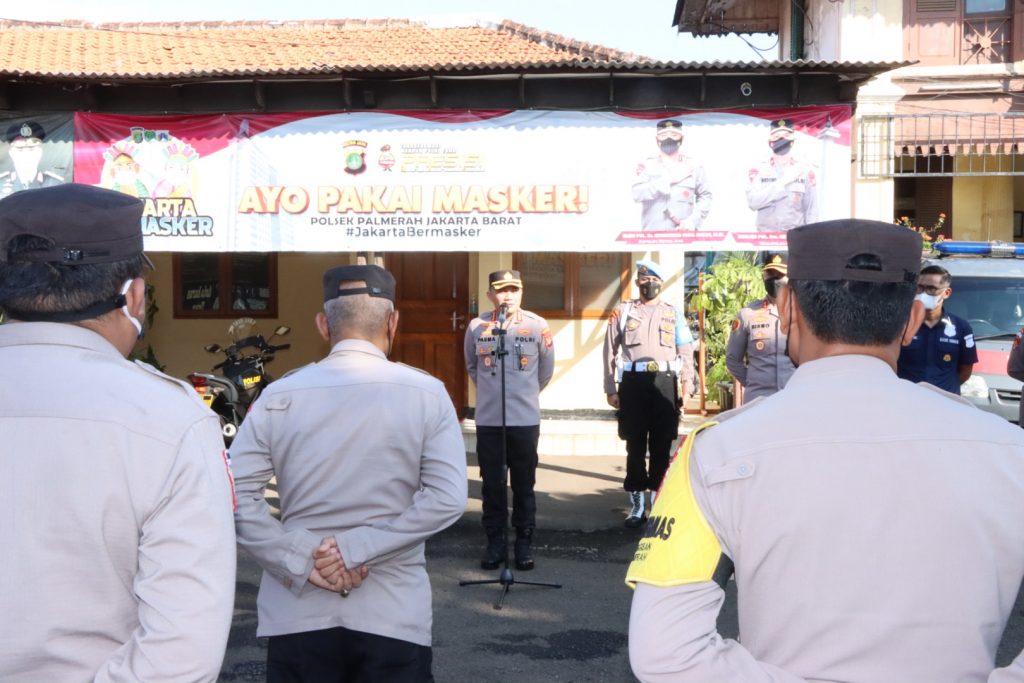 JAKARTA, Di kesempatan pagi yang cerah ini, Kapolres Metro Jakarta Barat Kombes Pol Pasma Royce mengambil apel dan memberi arahan personel polsek palmerah, Selasa, 31/5/2022.