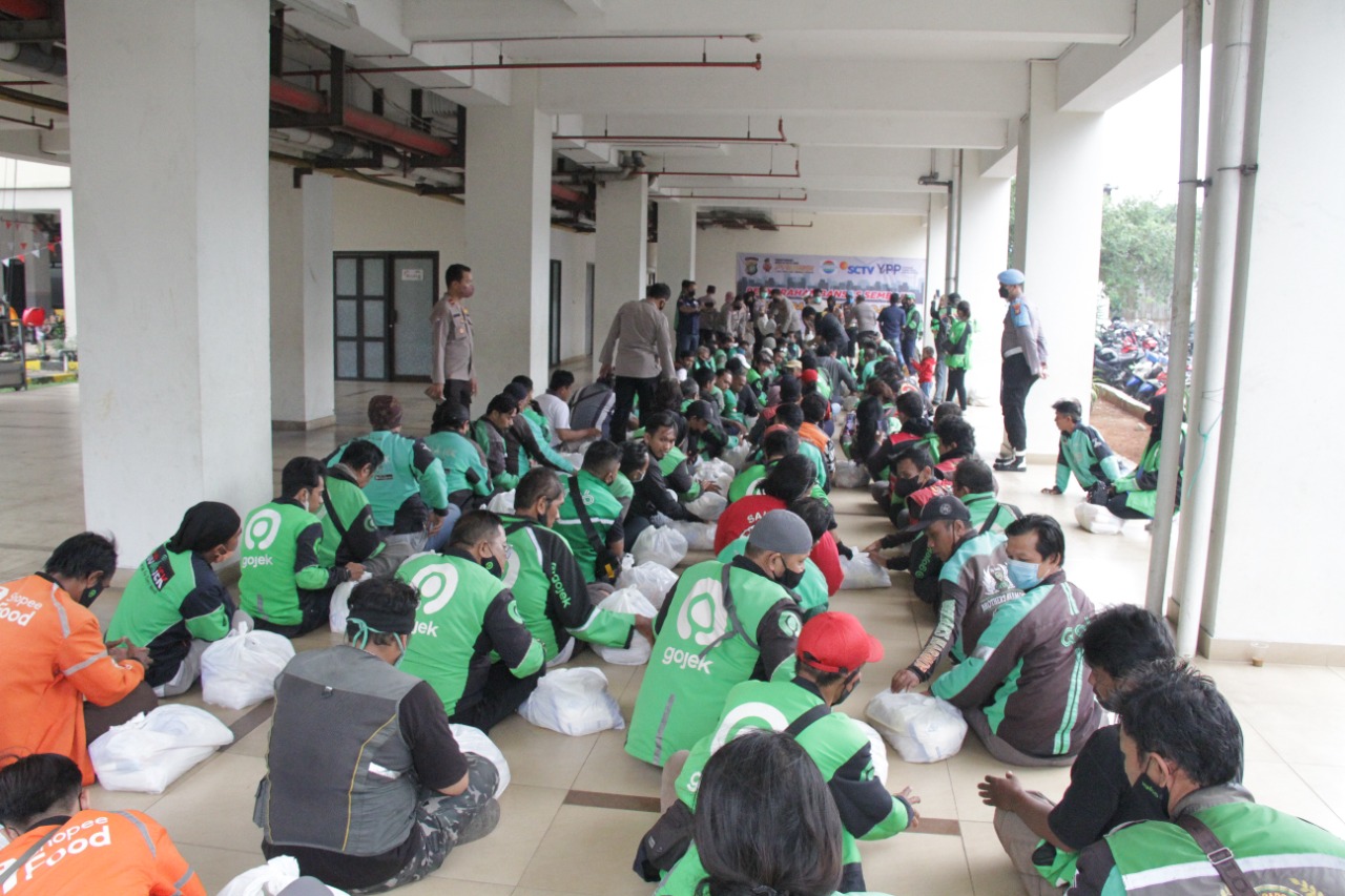 JAKARTA, Polres Metro Jakarta Barat berkolaborasi dengan indosiar dan SCTV membagikan bantuan paket sembako kepada para driver ojek online dalam rangka membantu meringankan beban ekonomi pasca kenaikan bbm