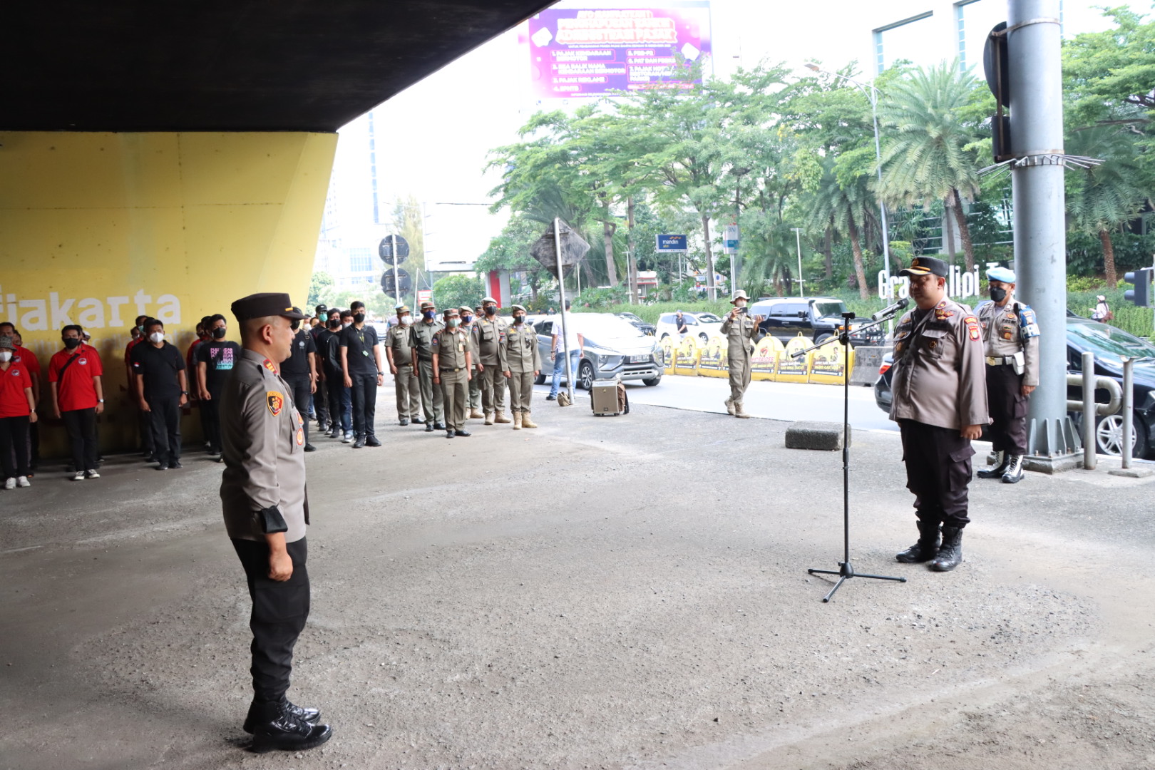 Dalam arahannya Kabag Ops polres Metro Jakarta Barat Kompol Prasetyo Noegroho mengatakan, pengerahan pasukan gabungan ini untuk mengantisipasi dan mengamankan pergerakan massa yang akan menyalurkan aspirasinya di istana negara maupun gedung Mpr / Dpr RI