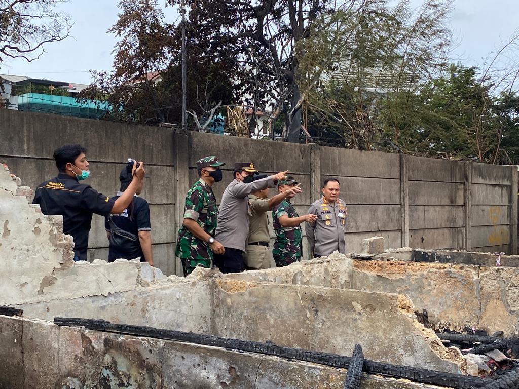 Jakarta Barat, Kapolres Metro Jakarta Barat Kombes Pol Pasma Royce bersama dengan Dandim 0503 JB Kolonel Kav I Made Maha Yudhiksa mengunjungi lokasi kebakaran di jalan H Martaif Rt 006/08 Sukabumi Selatan kebon jeruk Jakarta Barat, Senin, 31/10/2022.