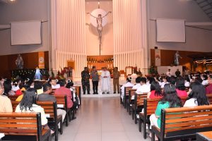 Jakarta Barat – Dalam suasana penuh kerinduan akan damai dan kasih Natal, Polsek Cengkareng turut serta memberikan pengamanan di gereja Santa Matias Rasul, Minggu (25/12/2023).