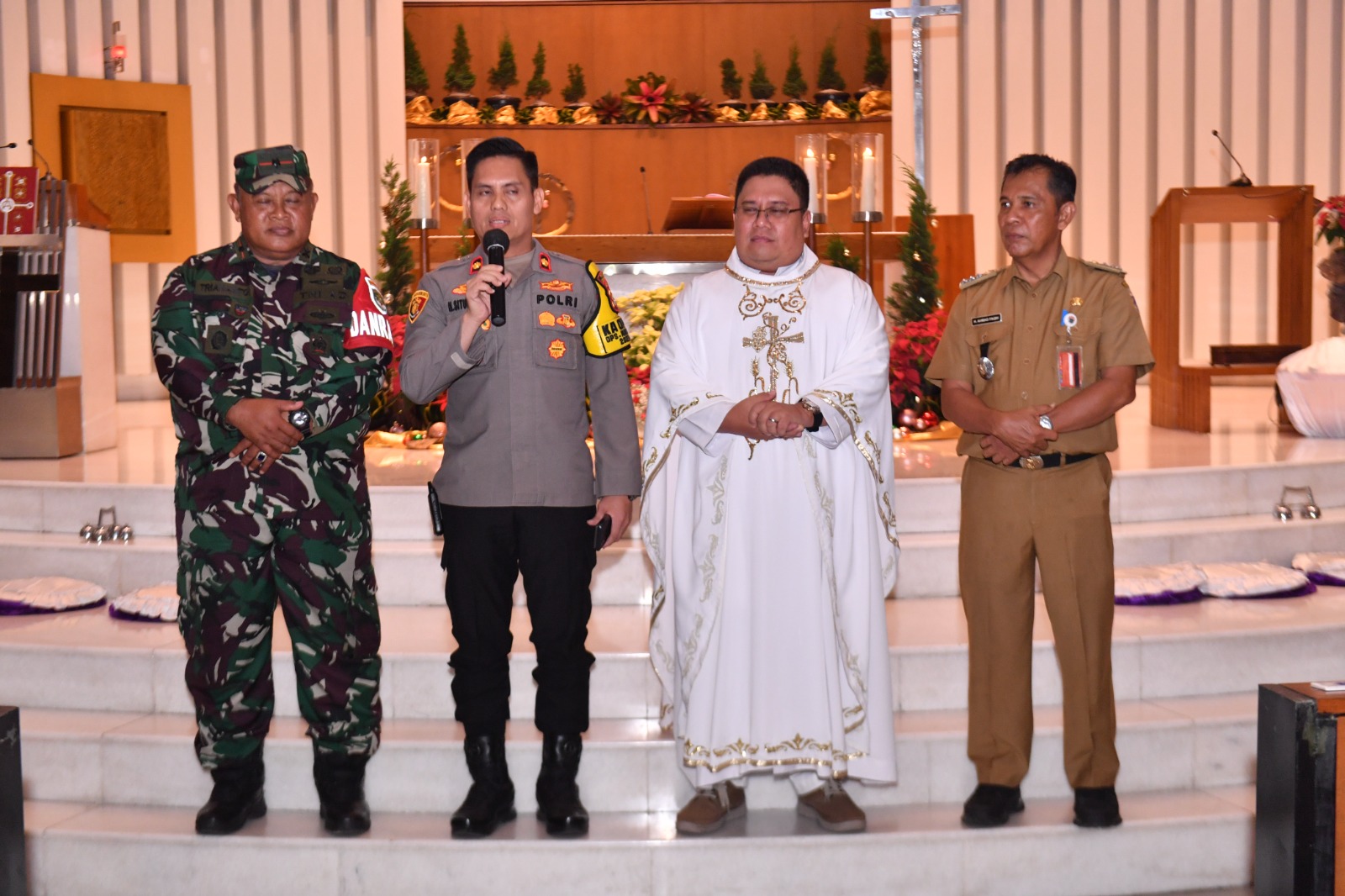 Beliau mengidentifikasi pengamanan ibadah sebagai kewajiban bersama antara petugas 3 Pilar dan elemen masyarakat.
