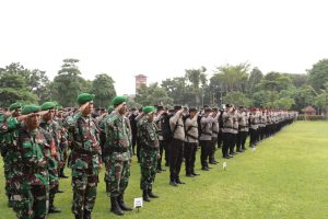 Jakarta Barat, Polres Metro Jakarta Barat bersama 3 Pilar melaksanakan apel pergeseran pasukan di halaman walikota Jakarta Barat, Senin, 12/2/2024.