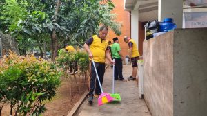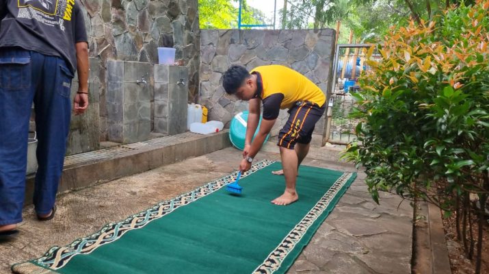 Dengan bersenjatakan sapu, kain pel, selang, ember, dan peralatan pembersih, personil Polsek Tambora sigap membersihkan setiap sisi masjid yang dirasa kurang bersih.