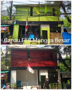 1.Posko FBR, Gardu 0-388 (PANDAWA), Jl. Mangga Besar I RW 04, Kel. Mangga Besar Telah dicat merah-putih dan dibersihkan dari atribut Ormas Akan difungsikan sebagai Pos Siskamling.