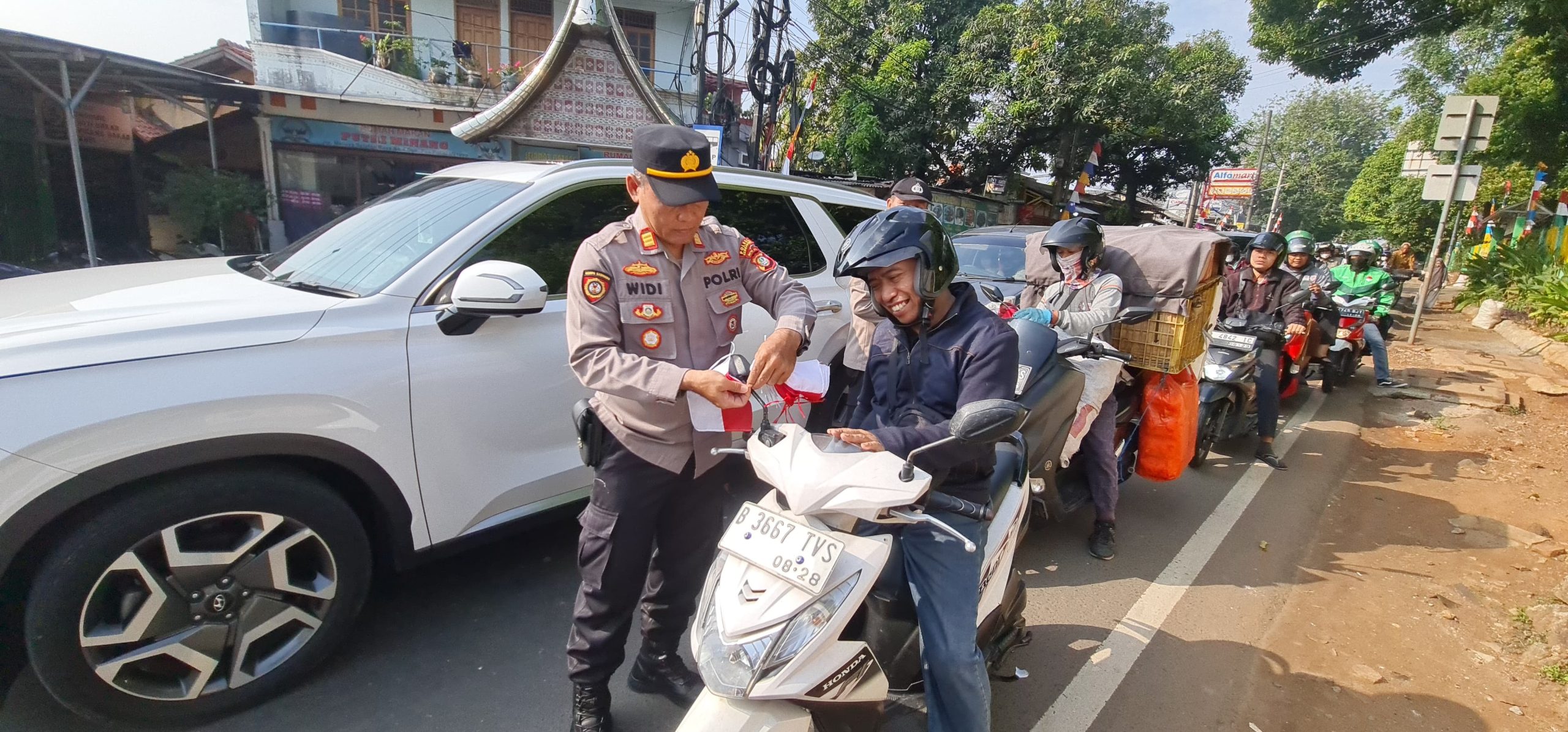 Dalam momen tersebut, para petugas membagikan bendera kepada pengendara roda dua dan roda empat, sembari memberikan himbauan agar warga turut mengibarkan bendera Merah Putih di depan rumah, tempat usaha, maupun pada kendaraan masing-masing sebagai simbol kecintaan kepada Tanah Air.