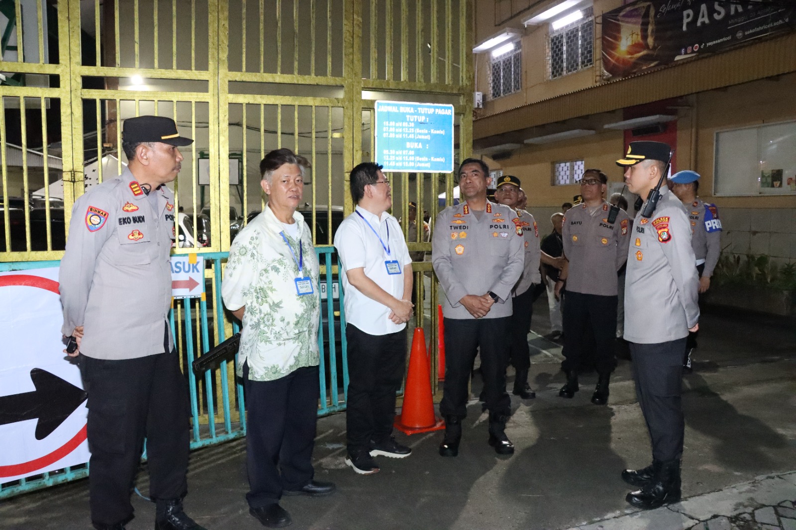 Kapolres Metro Jakarta Barat Kombes Pol. Twedi Aditya Bennyahdi melaksanakan kunjungan monitoring pengamanan di Gereja Katolik ST. Maria De Fatima / Ricci, yang berlokasi di kawasan Glodok, Tamansari, Jakarta Barat, Sabtu (4/4/2026) malam.