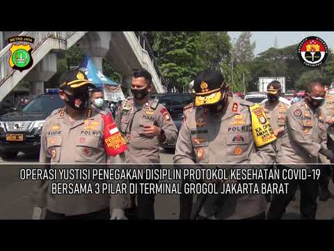 operasi yustisi penegakan disiplin protokol kesehatan covid -19 bersama 3 pilar diterminal grogol jakbar